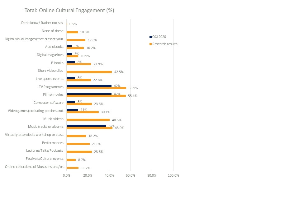 The survey asked respondents how much they agreed or disagreed with the following statement ‘I am willing to pay for online arts and culture if I get something extra e.g.,.: exclusive content or access offline’. 32% agreed and 25% disagreed with the statement. ↩