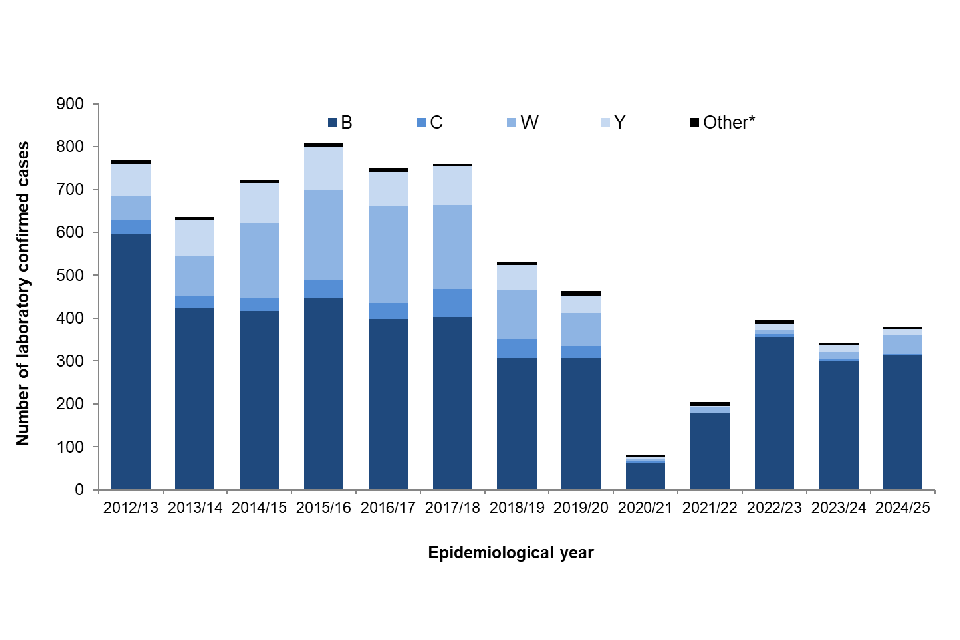 Invasive meningococcal disease in England: annual laboratory-confirmed reports for epidemiological year 2024 to 2025