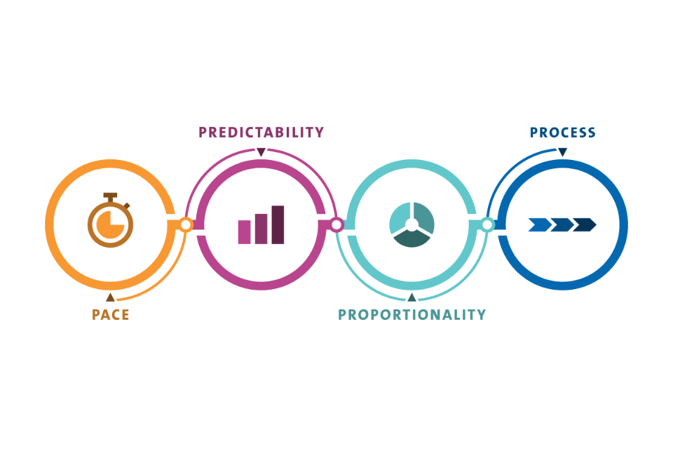 Image description: our 4 principles are pace, predictability, proportionality and process.