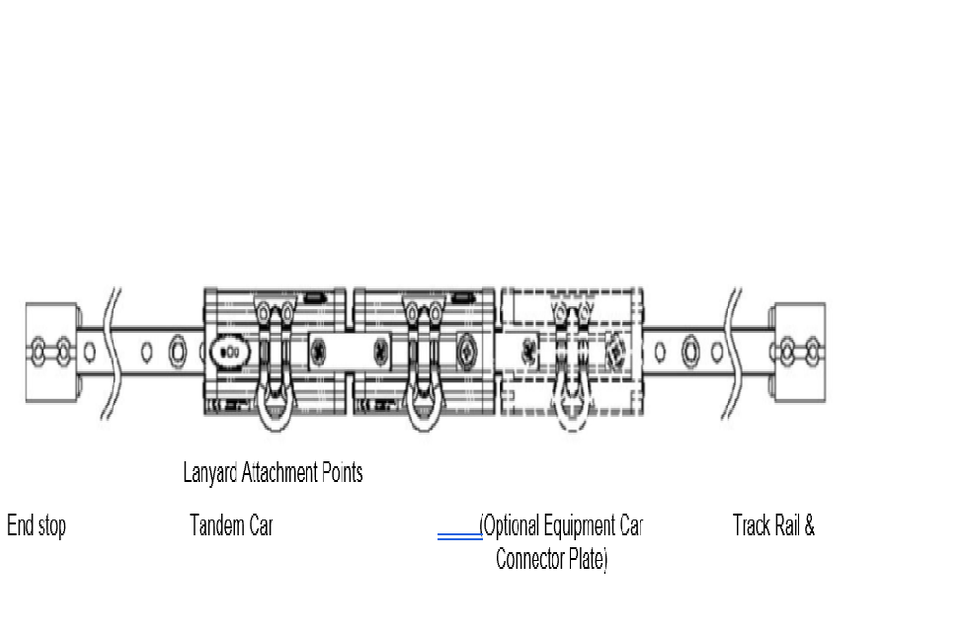 “rail and car or “rail and trolley” systems comprising of two travellers, cars or trolleys linked in tandem that can be separated, if necessary, into independent units. These cars are fitted to a metal rail which allows them to glide along it and to which support harnesses are attached