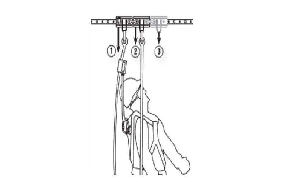 3.5 On systems where one of the travellers is fitted with a locking device, the device which locks the traveller in position along the track rail must only be disengaged from the track rail while the user is changing position. Once the user is in position, the locking device shall be re-engaged to hold the car or trolley in position and limit the user’s movement along the track rail.