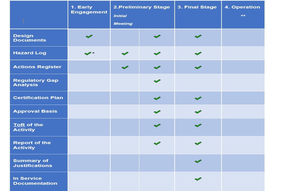 A.1.3 The objective of the Early Engagement stage is to develop a common level of understanding of the proposed design; confirm if the proposed design is potentially innovative; and identify any issues which might preclude certification. This engagement will facilitate the subsequent stages of the certification process.