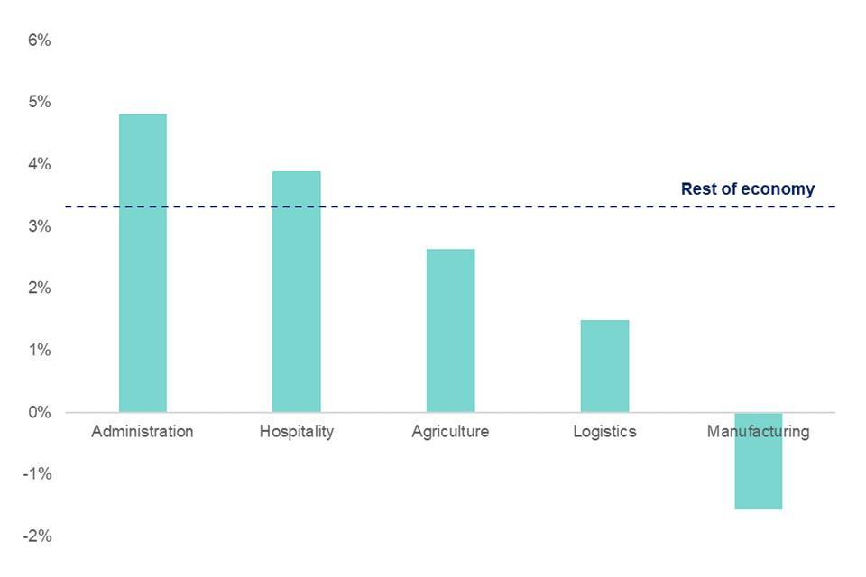 Although exploitation may be found throughout the labour market, there is widespread agreement between various parties with an interest in labour market exploitation about the types of work and sectors most at risk for non-compliance. As DLME’s table above suggests, jobs involving shorter training requirements (particularly at Regulated Qualifications Framework (RQF) 1 - 2 level) appear to be particularly common areas where workers are exploited. The Independent Anti-Slavery Commissioner (IASC) (2022) indicates that “Hand car washes, fast fashion, care homes and agriculture are just some of the UK sectors that face distinctive challenges in the UK labour market, from minor non compliances to severe labour exploitation”. Similar industries are identified by the GLAA’s industry profiles where it deems exploitation to be particularly likely. The MAC has also previously raised the risk of non-compliance and exploitation in the construction, hospitality, logistics, manufacturing and food production, car wash, and cleaning industries.