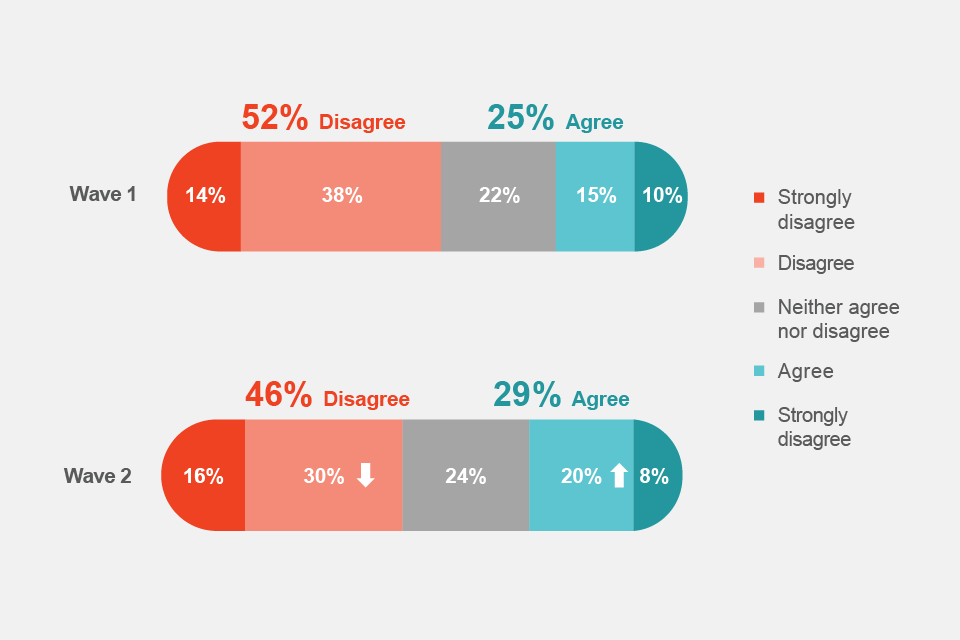 Base: Total sample: Wave 2 (556), Wave 1 (551)