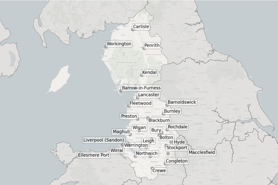 Figure 9: map showing the location of STWs sampled in Yorkshire and the Humber