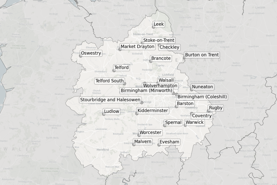 Figure 8: map showing the location of STWs sampled in the West Midlands