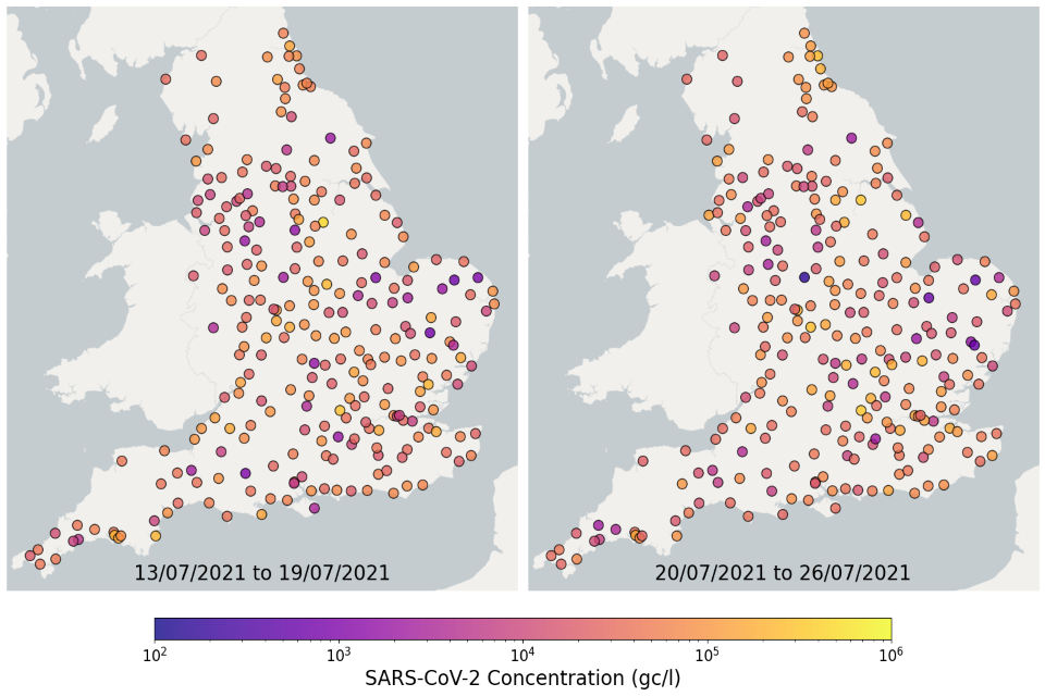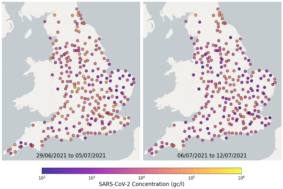 Environmental Monitoring For Health Protection (EMHP); wastewater monitoring of SARS-CoV-2 in England: July 2021