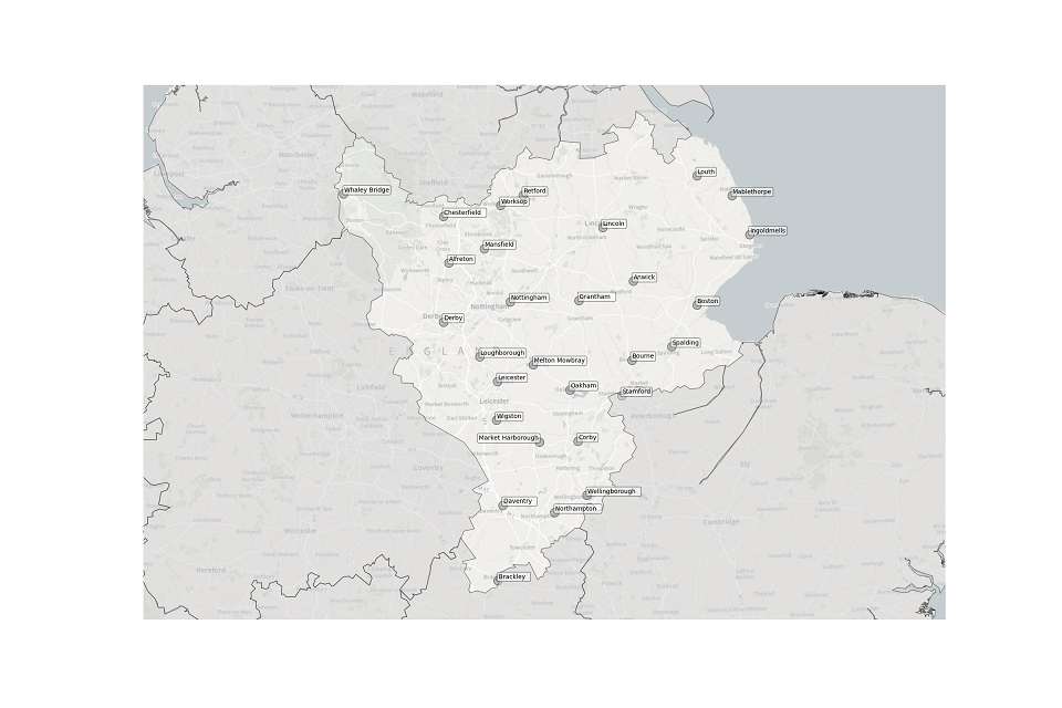 Figure 1. Map showing the location of Sewage Treatment Works sampled in the East Midlands.