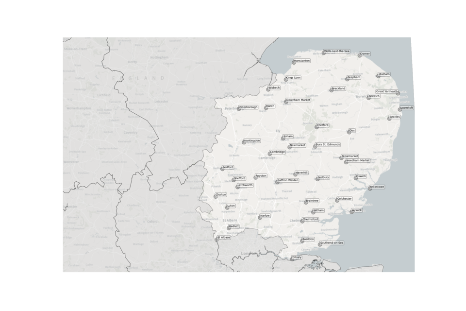 Figure 2. Map showing the location of Sewage Treatment Works sampled in the East of England.