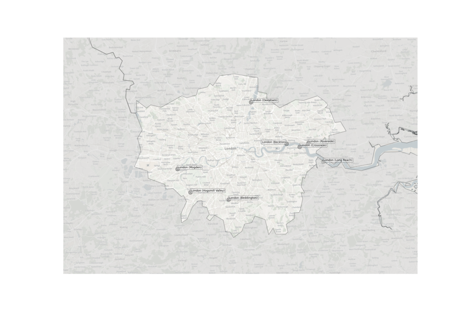 Figure 3. Map showing the location of Sewage Treatment Works sampled in London.