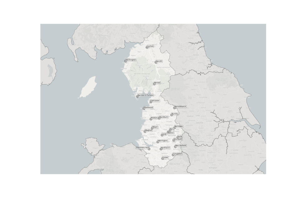 Figure 5. Map showing the location of Sewage Treatment Works sampled in the North West.