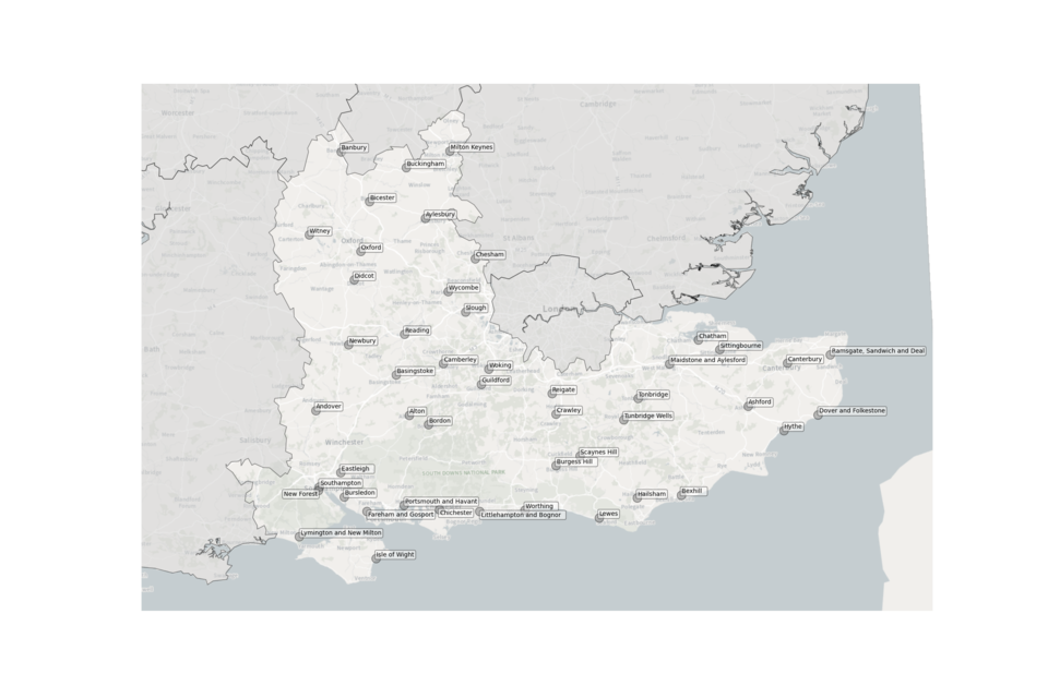 Figure 6. Map showing the location of Sewage Treatment Works sampled in the South East.