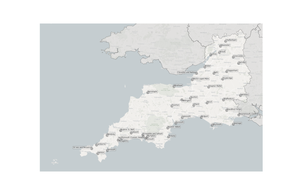 Figure 7. Map showing the location of Sewage Treatment Works sampled in the South West.