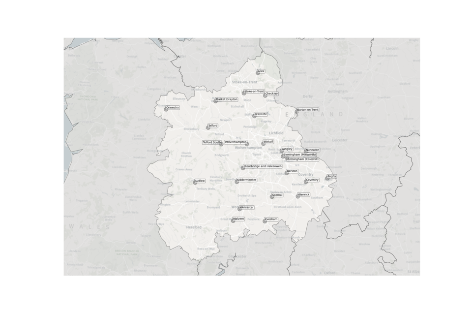 Figure 8. Map showing the location of Sewage Treatment Works sampled in the West Midlands.