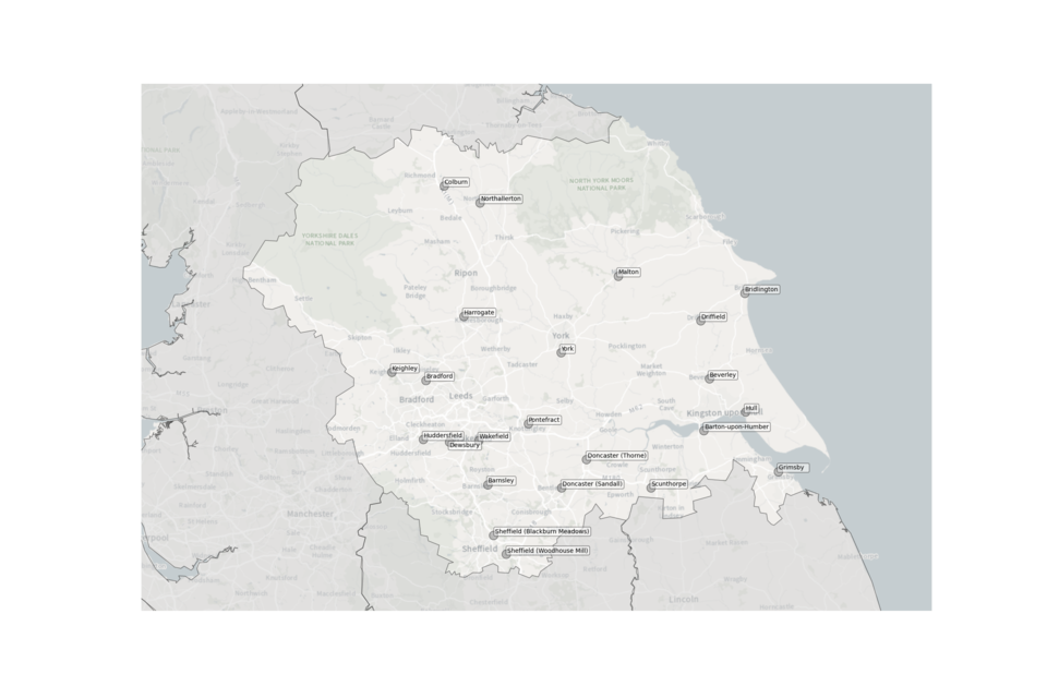 Figure 9. Map showing the location of Sewage Treatment Works sampled in Yorkshire and the Humber.