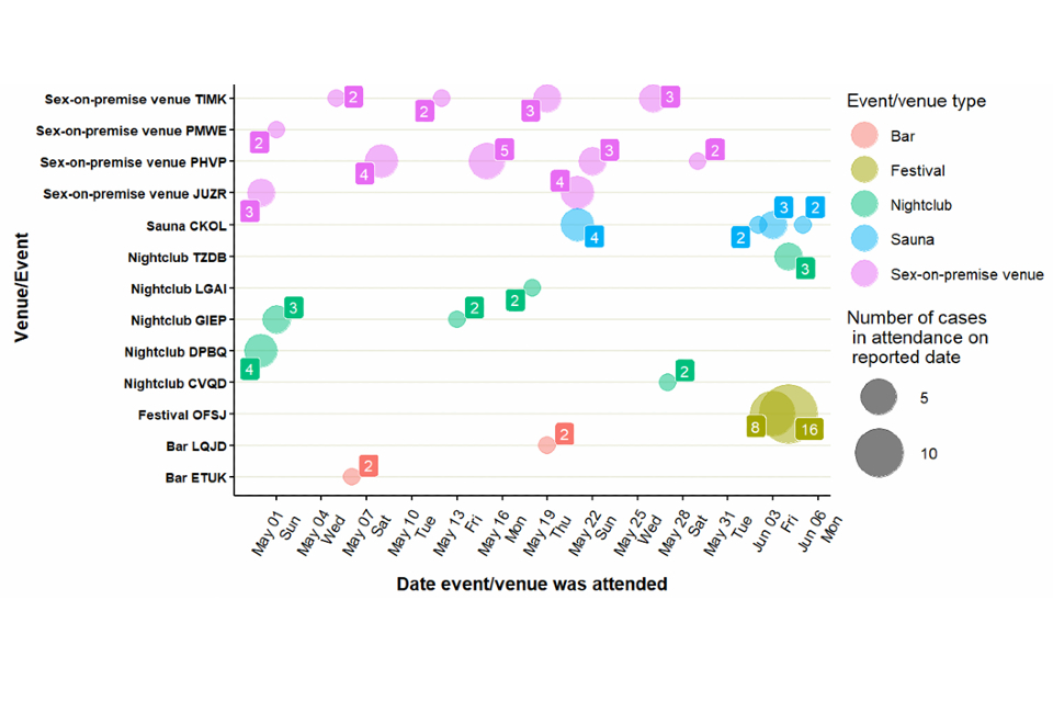 Where known, more than half had history of STI in the last year (54%, 233 out of 445); 30% (123) were living with HIV; 16% (67 out of 445) had one or no sexual partners, and 31% (134) had 10 or more sexual partners in the last 3 months. There have been 4 female cases and one child (under 16) in 2022 in England. Indications that transmission has moved outside the current network would be multiple cases in women or children. Despite potential uncertainty around ascertainment, there is no evidence of this in the UK at present.