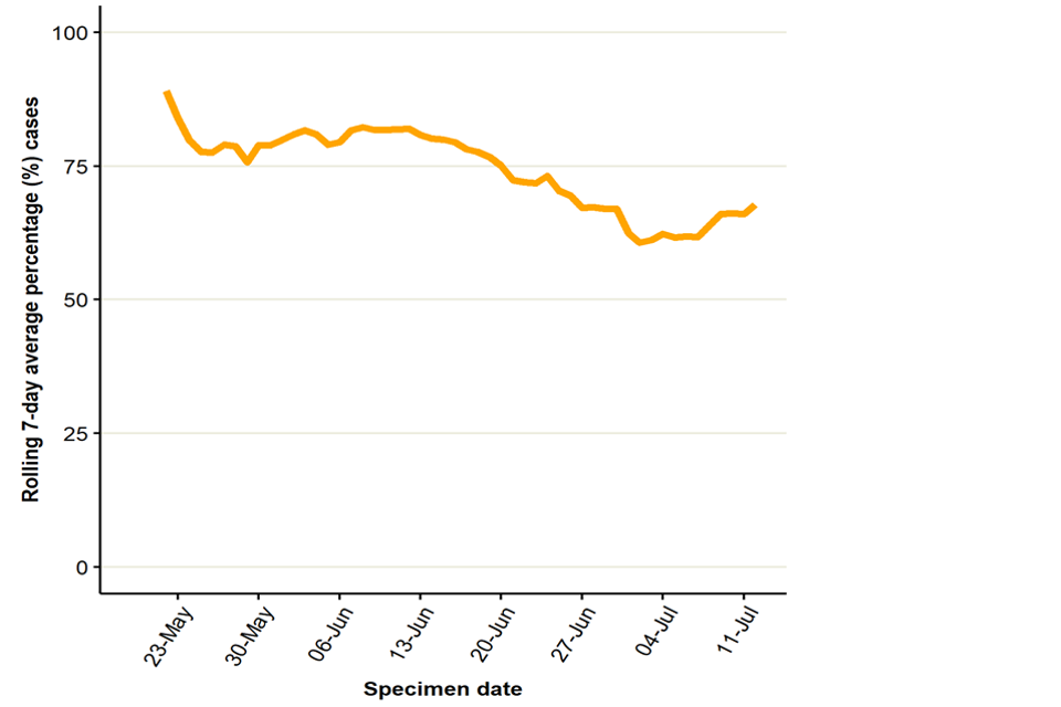 Figure 2. 7 day rolling average of the percentage of monkeypox cases in London, by specimen date