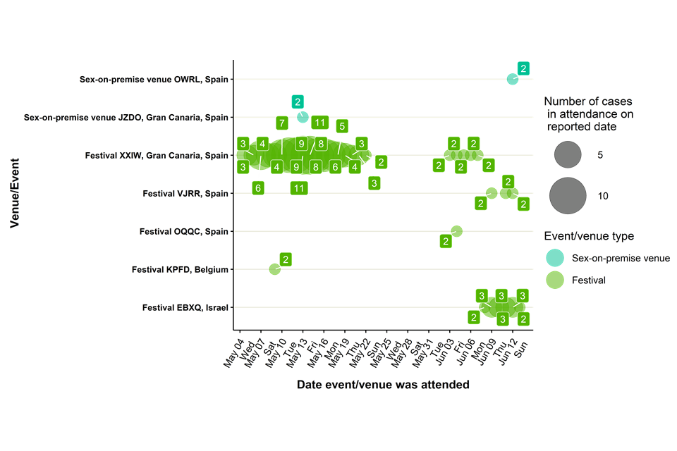A small number of sporadic transmission events from GBMSM networks to women is expected. However, if the proportion of cases in females is increasing, this could suggest that there is sustained transmission outside networks of GBMSM.