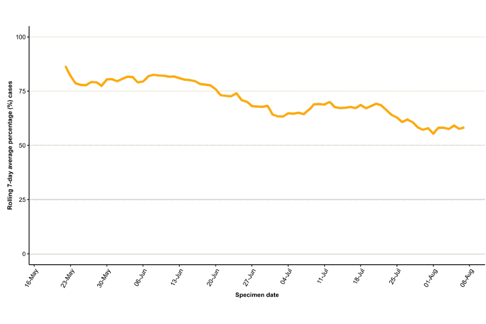The proportion of new cases within London has fallen since late-July.