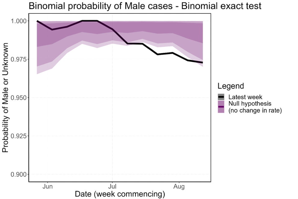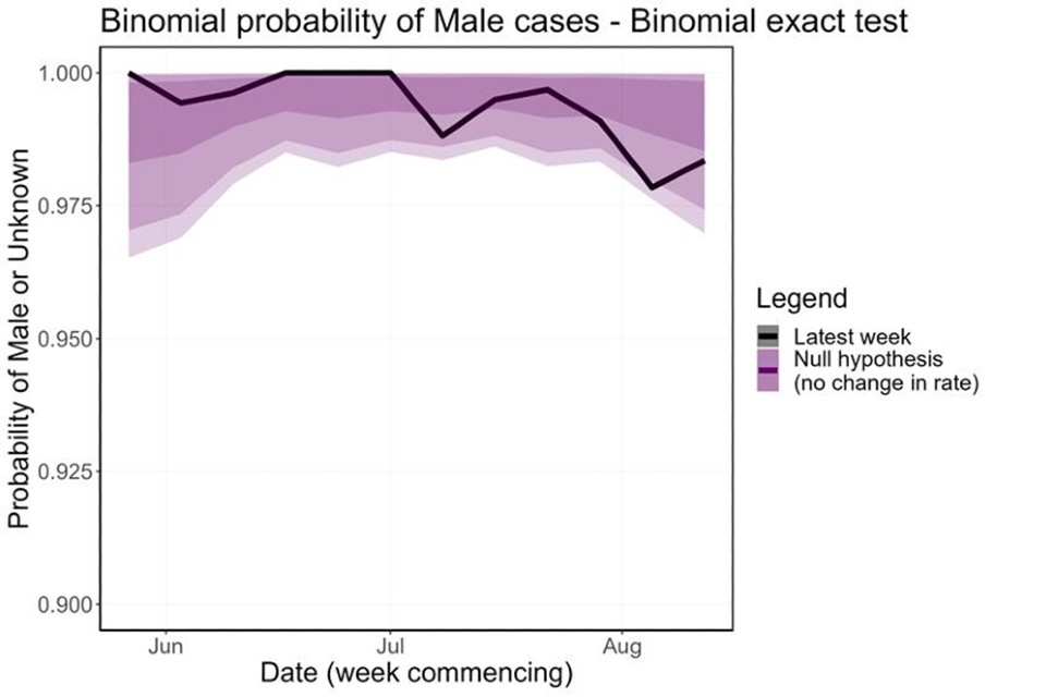 Figure 9. Binomial probability of male cases using a binomial exact test