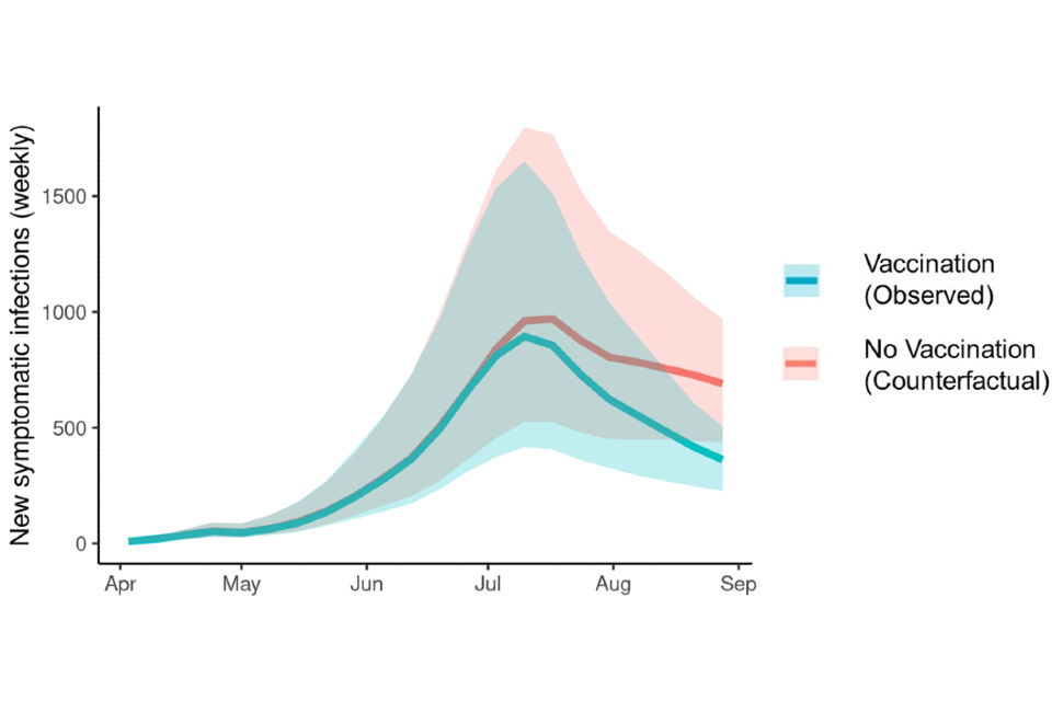 Another model supported the case that continued vaccination will have a large impact on bringing case incidence in England to low levels more quickly, this group used 70% to 85% vaccine effectiveness.