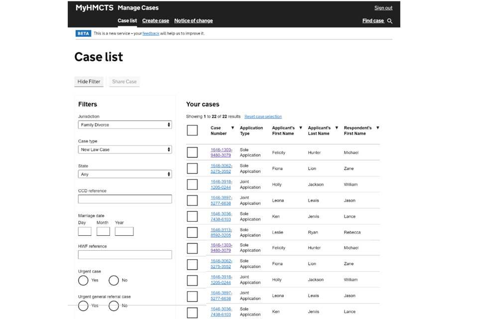 1. You can filter the list of cases that are shown on the case list, using the filter options on the left-hand side.