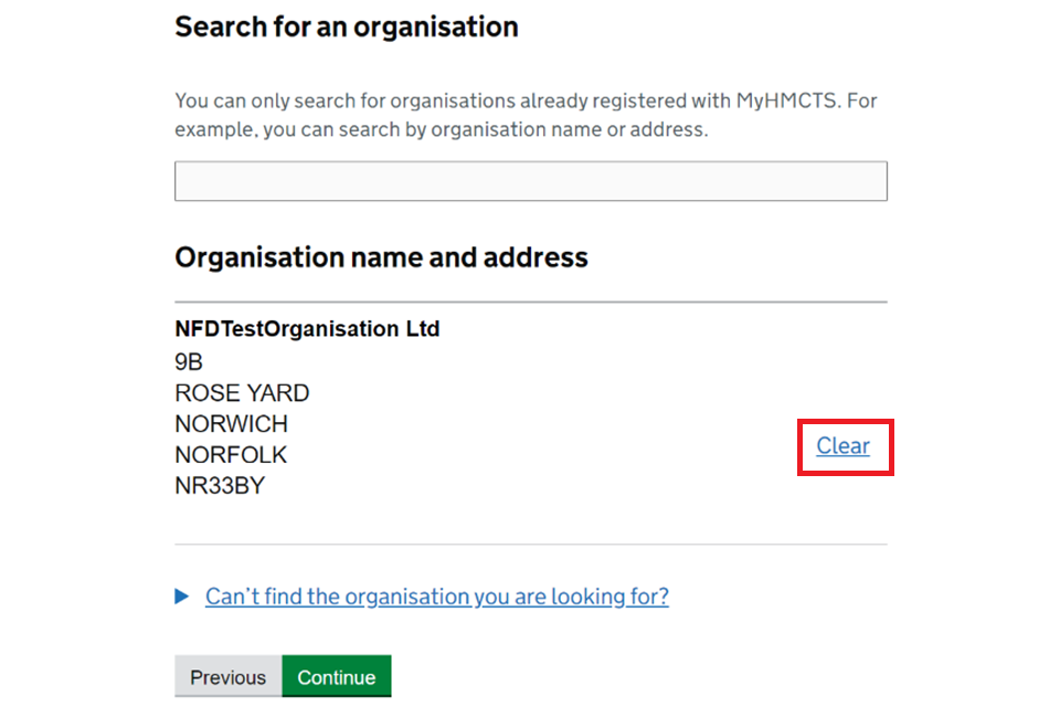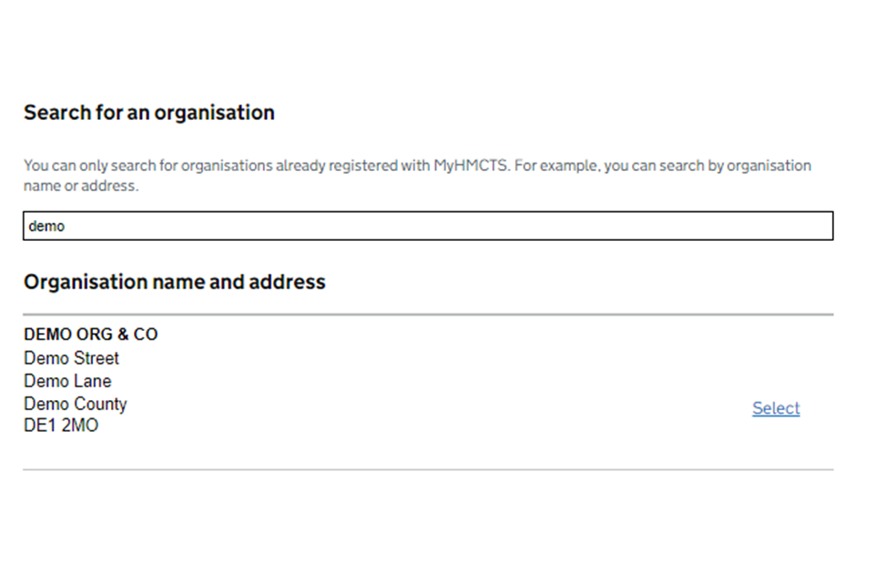 If you cannot find your organisation when entering your details or have issues registering with the service, contact MyHMCTSsupport@justice.gov.uk for the team to look into your account and ensure your organisation has been setup correctly. We aim to respond within 5 working days.