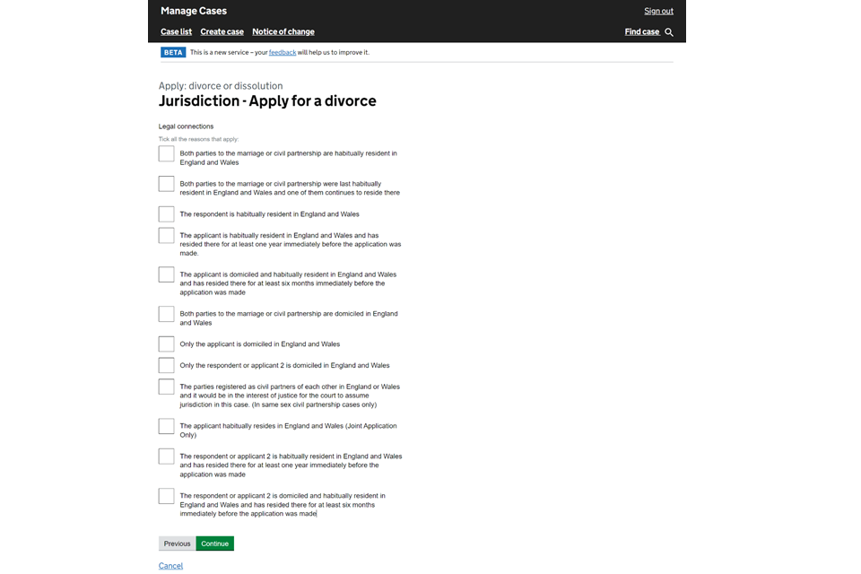 As this is a joint application, you must choose both applicants’ legal connections to the UK. Applicant 2 is not asked this question but is shown your answers and can choose to disagree and ask you to amend the jurisdiction answers.