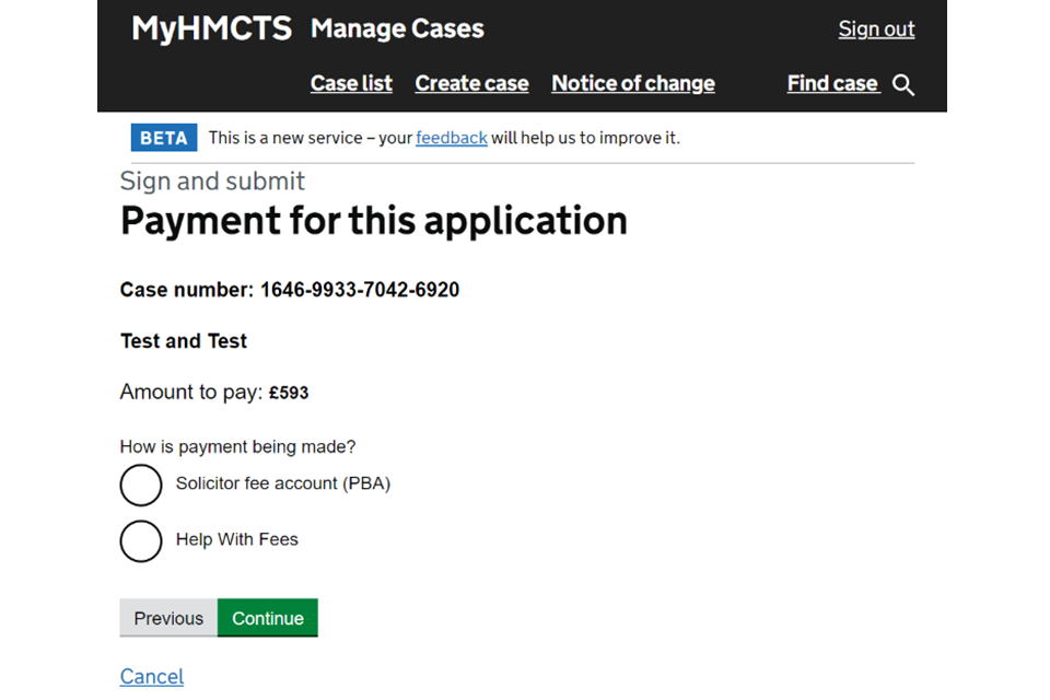 If you’re a solicitor who is not based in the UK and you do not have a PBA account, contact hmctsfinancialremedy@justice.gov.uk for help completing your payment.