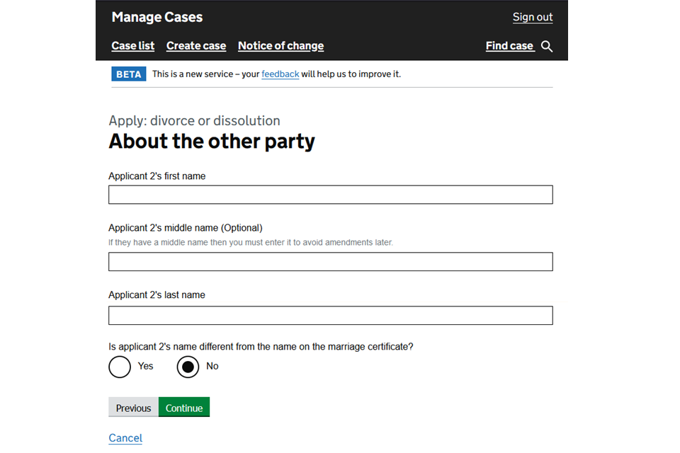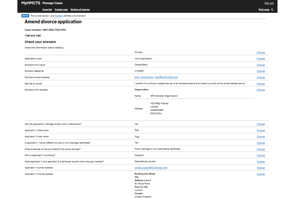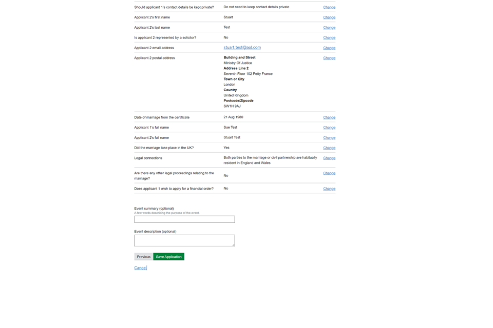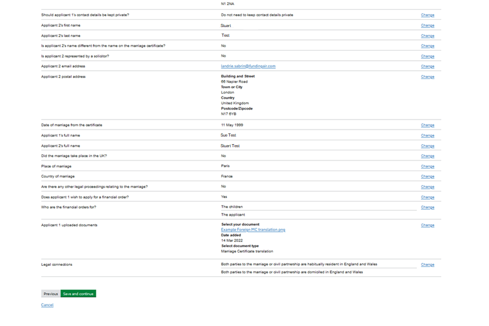 4. When you select ‘amend divorce application’ you will be taken through the application again page by page with all of the answers pre-populated. As an example, applicant 2 may have stated that the date of marriage was incorrect. If you agree then you can amend the marriage date.