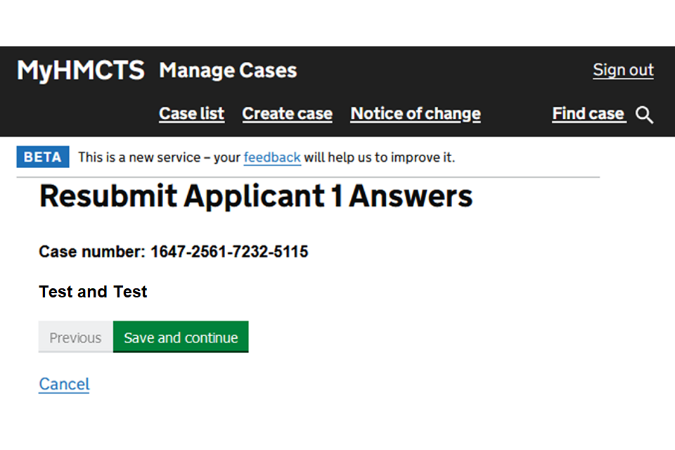 - Resubmit applicant 1 answers – this will take you to a save and continue screen to resubmit the answers without any changes at all