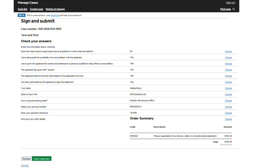 5. If your PBA payment is successful this is deducted from the account immediately and the case moves into the state ‘submitted’ state.