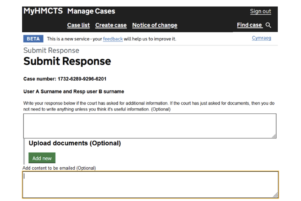 If you need additional support with your MyHMCTS account, email MyHMCTSsupport@justice.gov.uk. We aim to respond within 5 working days.