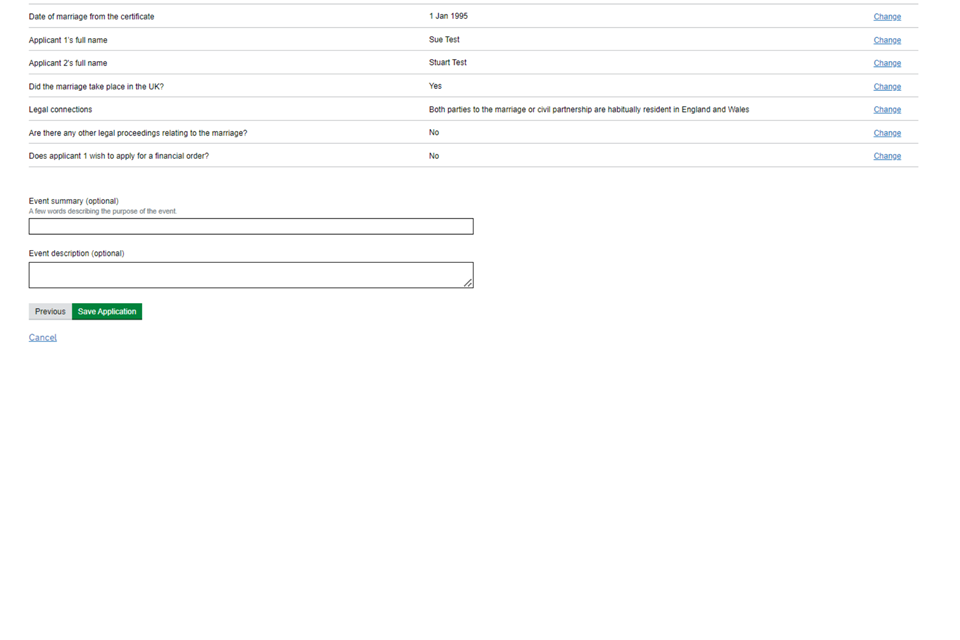- applicant 1’s full name as it appears on the marriage or civil partnership certificate