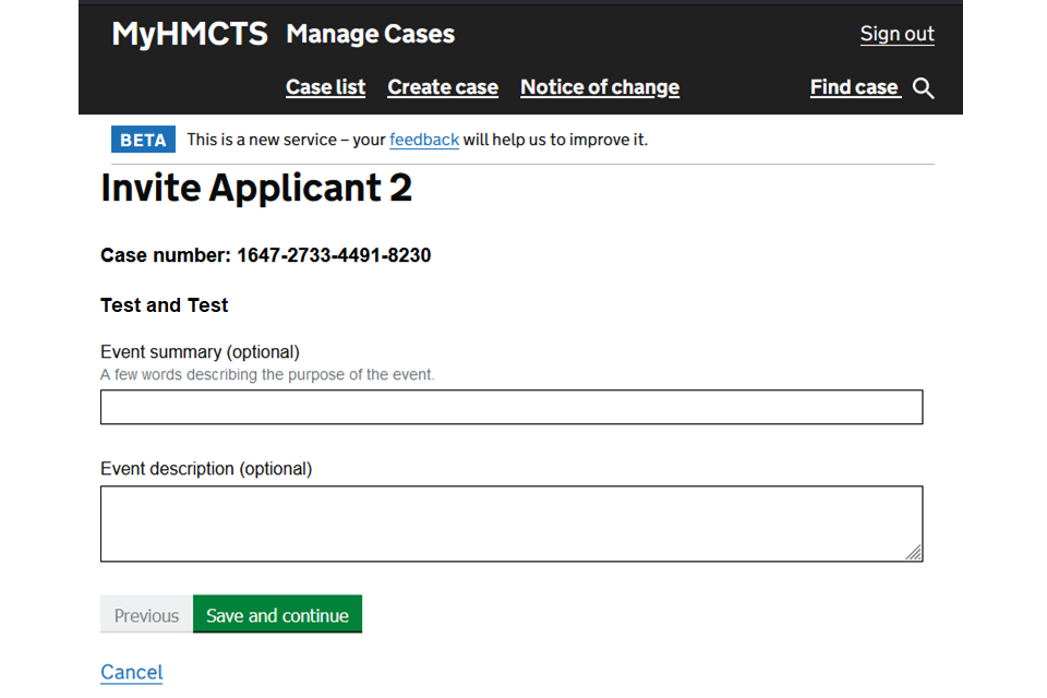 7. If you do not know the address of applicant 2 and want to apply for dispense with service or alternative service, you can do so once you have submitted the application using the general application function. See deemed and dispensed service applications guidance or alternative service journey and general applications guidance.
