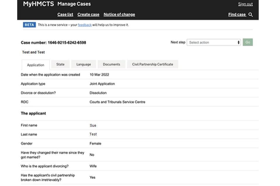 4. You will need to ensure you are in the correct case type for all new law divorce and dissolution by choosing ‘New Law case’