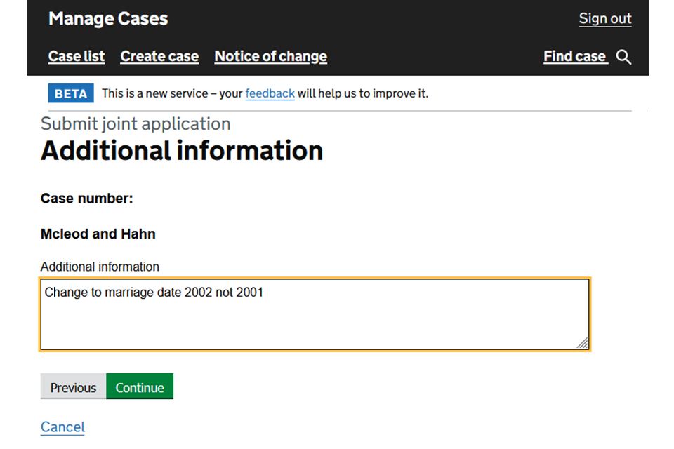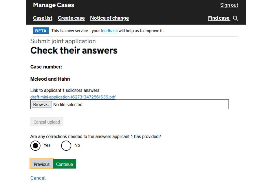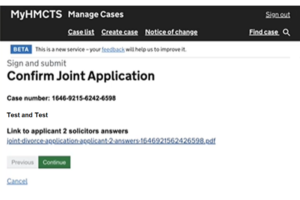 This will end your journey whilst you wait for amendments by applicant 1’s solicitor. You do not have to take any other steps or view the statement of truth pages until applicant 1’s solicitor has made the changes.