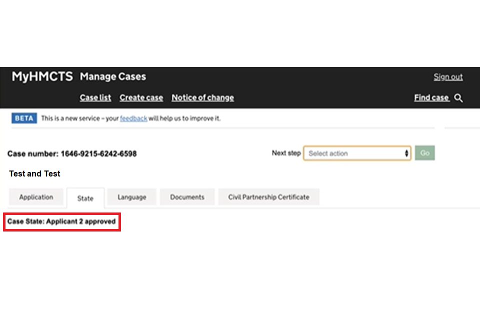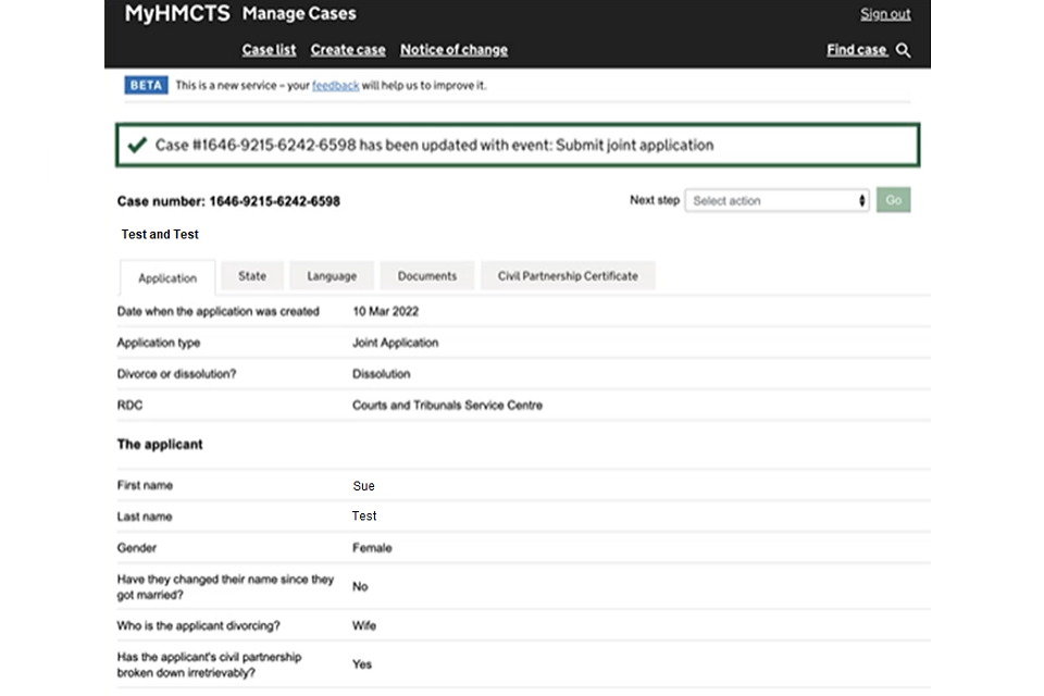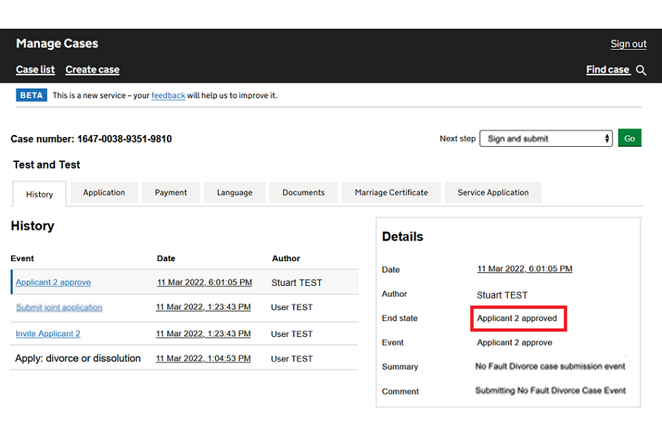 9. The case will update with an event ‘submit joint application’ and the state will display as ‘Applicant 2 approved’.