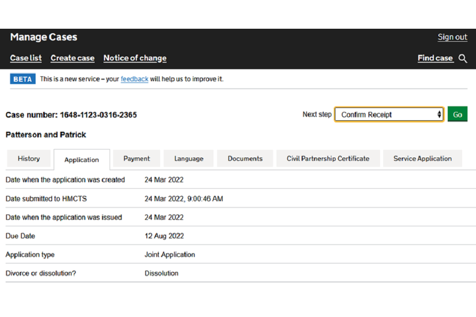 The court will now progress the joint application. A notification and notice of proceedings will be sent to both solicitors at this stage who will be required to ‘confirm receipt’ of the issued application.