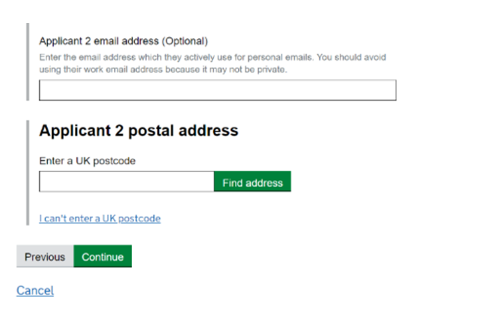 5. If you have an email address for applicant 2 you should provide it. They will receive all correspondence via email. Make sure it is different from the applicant’s email and is not a work email.
