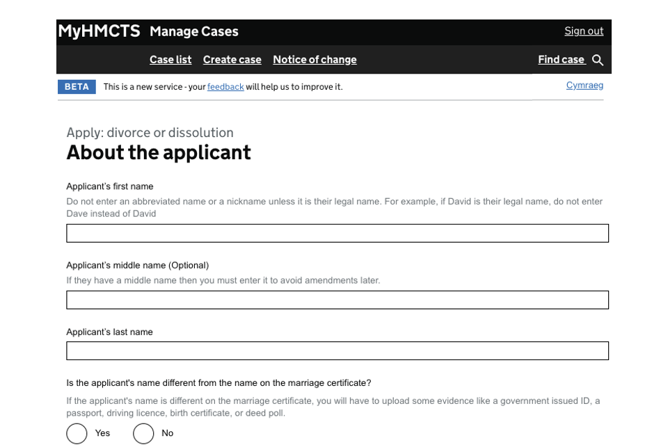 For divorce and the dissolution of a civil partnership, you can apply using a sole application or a joint application. There is separate guidance on how to apply for joint applications.