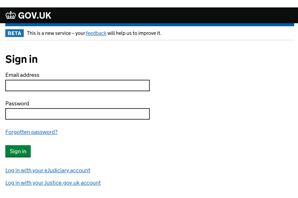 1. Sign in to MyHMCTS using your email address and password.