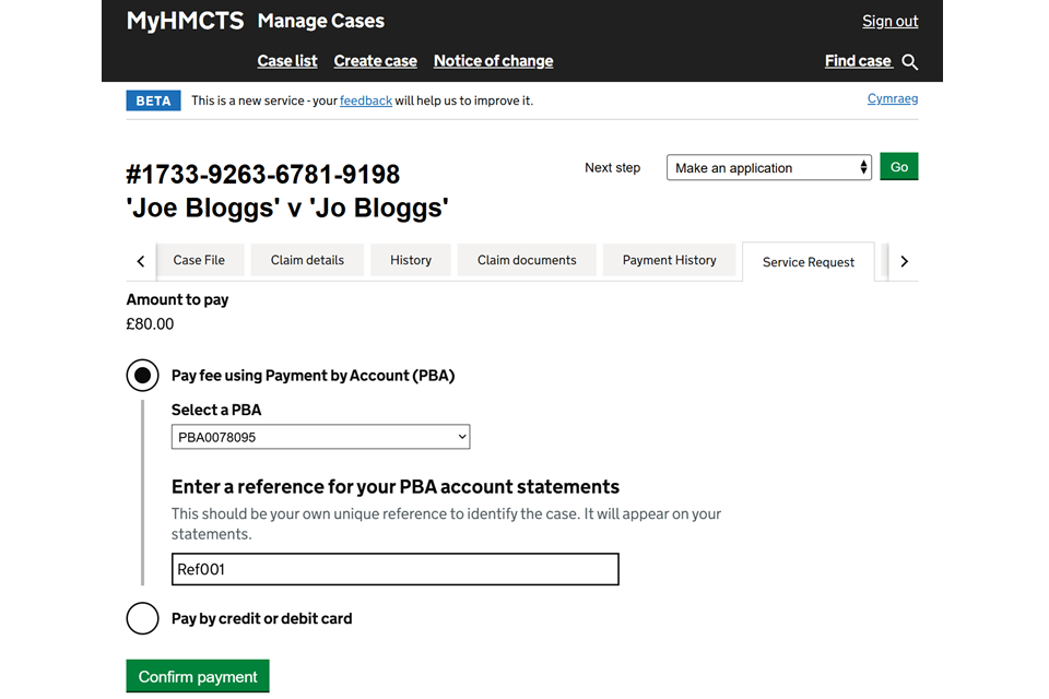 - Set up an HMCTS Payment by Account (PBA) to pay the court fees online.
