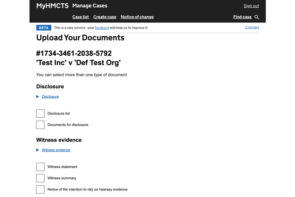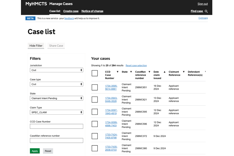 - managing a case on MyHMCTS