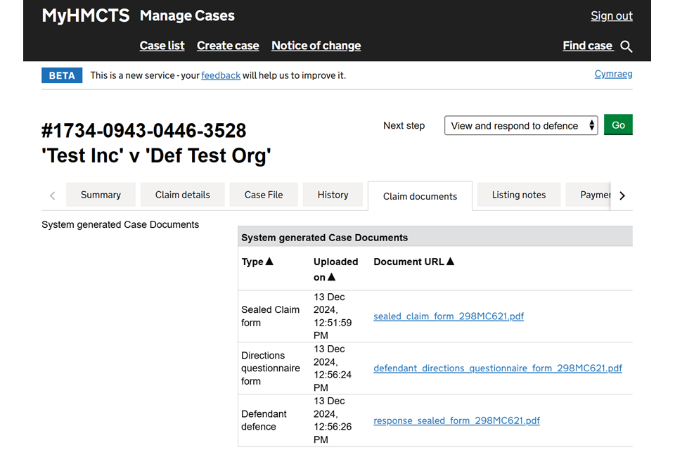 The defence and directions questionnaire will be in the ‘Claim documents’ tab. You must review these and decide whether or not to proceed.