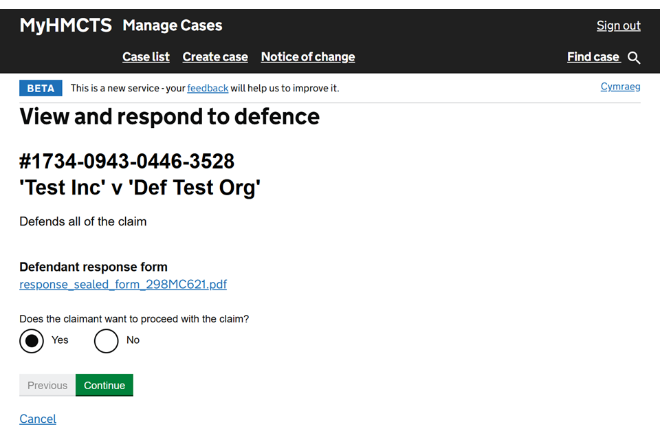 When the defendant responds, you will receive an email. You must review the response and update the case in MyHMCTS to tell the court how you want to proceed.