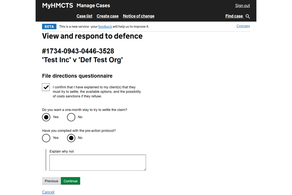 An unrepresented defendant can also choose to respond in Welsh if that is their preferred language. If they do, there will be an automatic extension to the response timeline to allow for translation.