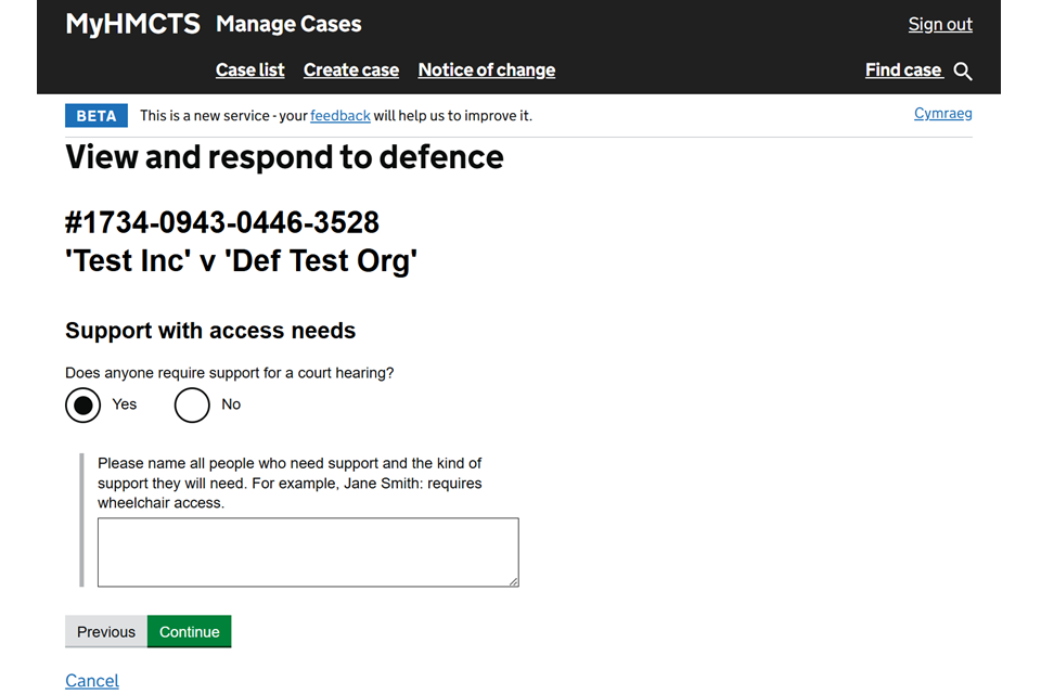 If you need additional help with MyHMCTS email MyHMCTSsupport@justice.gov.uk. We aim to respond within 5 working days.