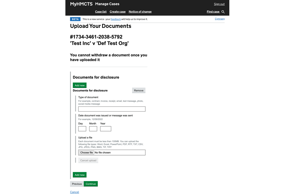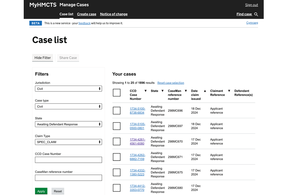 Managing cases and case access in MyHMCTS