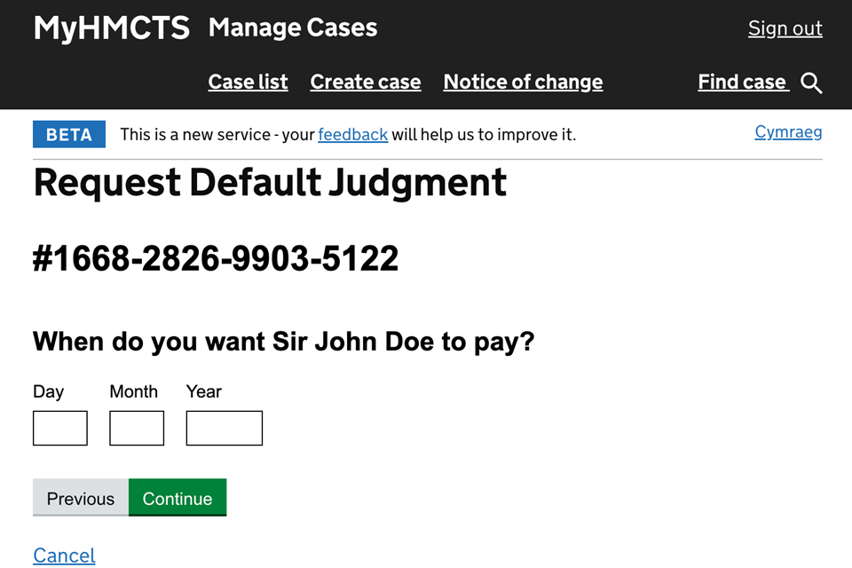 If you accept the set date or payment plan, you can use MyHMCTS to request judgment by admission.
